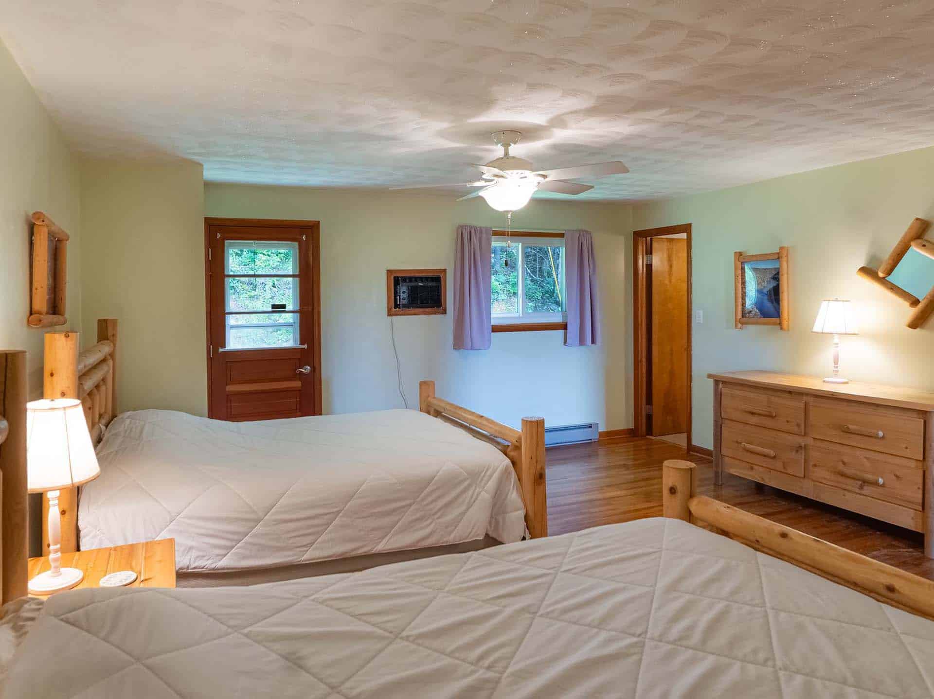 The Hawks Nest State Park Suite features 2 full peeled white cedar log beds. The room is artfully decorated with photographs of the many scenic views from the park.
