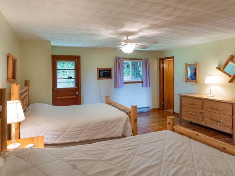 With private baths in every room and real beds—not just bunks or futons—for 32 people, we’re the ideal space for group retreats. The Lodge features 10 bedrooms total. Five of the bedrooms have two full beds, one bedroom has two queen beds, one bedroom has a king bed, and three of the bedrooms have one queen bed. Every bedroom is stocked with sheets, blankets, towels and soap.